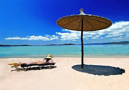 Liegen und Schirme an einem bestimmten Abschnitt des Strandes inklusive.